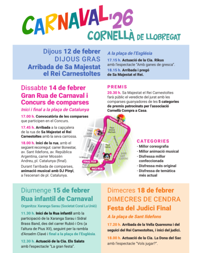 Al día siguiente, el domingo 15 de febrero, se celebrará el Carnaval Infantil, a partir de las 11.30 h, desde Quatre Camins y hasta la plaza de l’Esglesia.