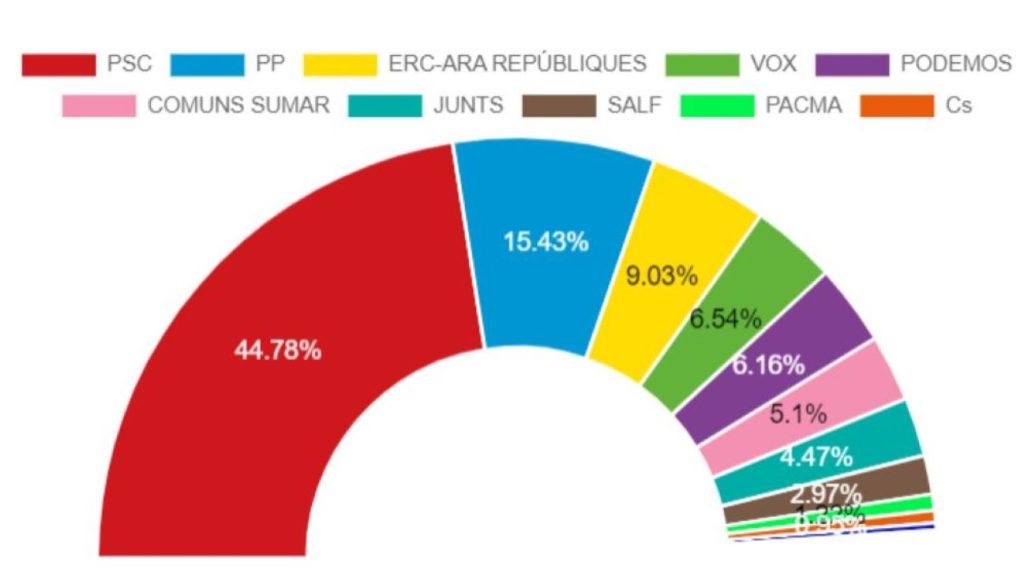 El PSC en L’Hospitalet ha obtenido el 44,3%, en Sant Boi de Llobregat el 43,17%, El Prat 41,44%, en Viladecans el 42,34%, 47,19% en Santa Coloma de Gramenet, el granero de votos más importante del partido de Salvador Illa en Catalunya, sin duda, se encuentra en estas ciudades.