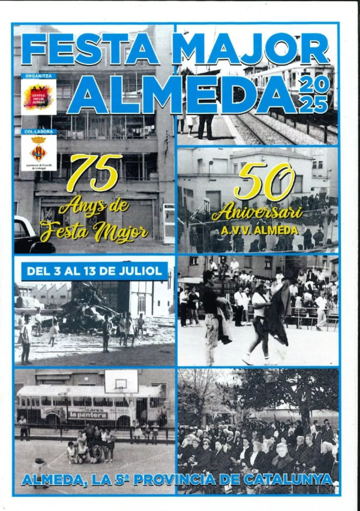 El barrio de Almeda de Cornelà celebra sus fiestas del 3 al 13 de julio, y este año es una celebración muy importante, ya que coincide con el 50 aniversario de la Asociación de Vecinos y con el 75 aniversario de las fiestas mayores del barrio. Por tanto, toda la programación prevista para este 2025 está pensada para destacar la evolución de este barrio de Cornellà y celebrar, en hermandad, sus actividades.